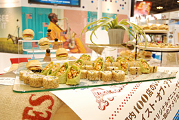 東京国際展示場(東京ビッグサイト) で開催された「JATA旅博2012」に出展したBrandUSAパビリオンにおいて、「テイスト・オブ・アメリカ2012」よりJATA旅博限定のオリジナルフィンガーフードをケータリングし、訪れた多くの方にご試食いただきました。ミニハンバーガーをはじめとしたアメリカンなメニューをはじめ、ラップスタイルのフィンガーフードなどご好評いただきました。