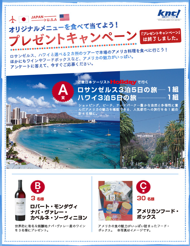 なお、A賞アメリカ旅行の当選発表は、